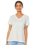 Bella+Canvas Womens 4.2 Ounce Relaxed Jersey Short Sleeve V-Neck T-Shirt. Sideseamed. Relaxed fit. Tear Away Label. Solid Colors: 100% Airlume Combed and Ringspun Cotton, 32 singles 4.2 oz. Triblend: 50/25/25% Airlume Combed and Ringspun Cotton/poly/rayon, 40 single 3.8 oz.
