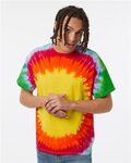 Dyenomite Adult 5.3 Ounce Teardrop Bullseye T-Shirt. 5.3 ounce Preshrunk 100% cotton with double needle stitching on neckline and bottom hem.